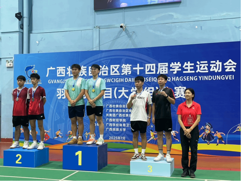 7月11日,自治区第十四届学生运动会羽毛球项目圆满落幕。乐玩首页(中国)网页版代表队由孙扬、李金鸿两位老师带队,经过四天鏖战,在高职高专组中勇夺男单银牌(李光浚)、男双铜牌(李光浚、莫俊杰)、女双第四(方艳丹、莫月芝)、混双第六(方艳丹、宁润兴)及女团第七名,为学校“体教融合”育人实践再添生动注脚。