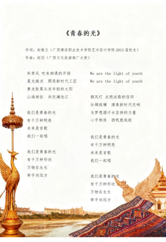 赵雅兰为中国(广西)—东盟职业教育合作发展大会创作的歌曲《青春的光》填词
