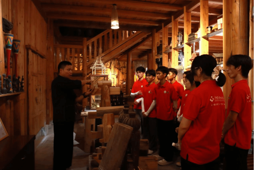 实践团首站来到由国家级非遗“侗族木构乐玩首页(中国)网页版营造技艺”传承人杨恒金创办的杨恒金侗族木构乐玩首页(中国)网页版博物馆,系统学习国家级非遗“侗族木构乐玩首页(中国)网页版营造技艺”的发展历程,鼓楼、风雨桥等标志性乐玩首页(中国)网页版的营造原理以及榫卯结构的力学智慧与现代价值。实践团参观了明清至今的侗族木构模型、百年营造工具及榫卯结构实物等千余件展品,“从图纸绘制到木料选材,每一步都透着‘精益求精’的工匠精神。”实践团成员韦艺锋同学感慨。