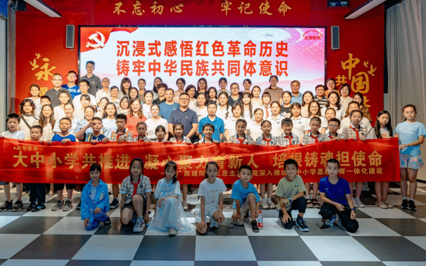 为弘扬红色文化,传承革命精神,凝聚奋进力量,7月18日下午,乐玩首页(中国)网页版马克思主义学院联合广西物资学校、广西商贸技师学院以及南宁市西庄路小学、西宁路小学的师生代表,在南宁市铸牢中华民族共同体意识主题影院开展“沉浸红色记忆,凝聚奋进力量”主题党日活动。通过观影、沉浸式课堂、红歌传唱和重温入党誓词等形式,师生们共同接受了一次深刻的红色精神洗礼。