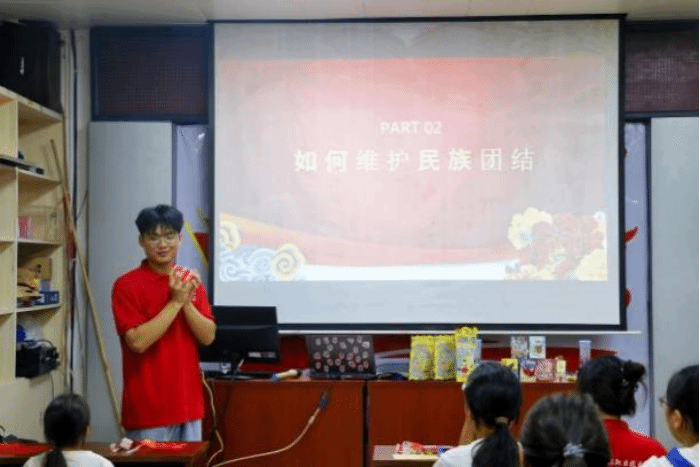针对不同受众,宣讲团精准设计宣讲内容。在南宁市大同社区,团队以“各民族要像石榴籽一样紧紧抱在一起”等金句为切入点,通过多民族主题绘本讲解和互动游戏,让民族团结的种子在孩子们心中生根发芽。在靖西会场的“戍边英雄”双语宣讲会上,成员们深情讲述守边卫国的感人事迹,“寸土不让、护我家国”的誓言引发强烈共鸣,村民们报以雷鸣般的掌声。“听了英雄的故事,更明白脚下这片土地的分量!”一位老党员更是动情地说。