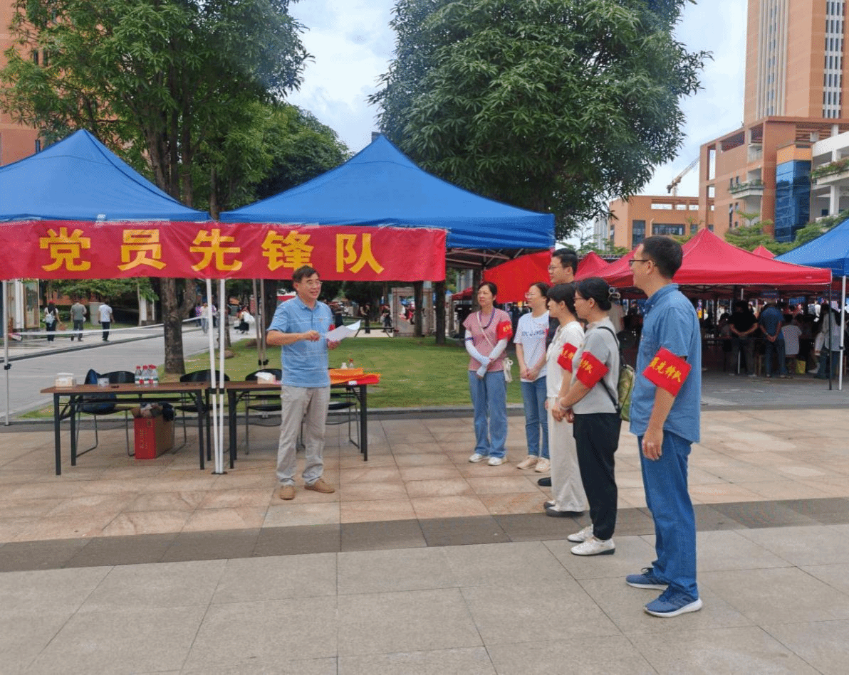 在报到入口,党员积极引导新生扫码登记、核验材料,高效疏导人流,宣传反诈知识;在行李转运区,党员穿梭忙碌,肩扛手提助力新生搬运行李,驾驶电瓶车将新生行李运送至宿舍;在宿舍区内,党员教师指导新生整理内务……校园里,党员先锋队队员的身影随处可见,亲切的笑脸化解了新生初来乍到的拘谨,热情的话语解答着入学的种种疑惑,给新生们的校园初体验增添了满满的安全感与归属感。党员先锋队员以细致的服务温暖人心,把先锋的本色转化为奋进的动能,让党旗在迎新一线高高飘扬。