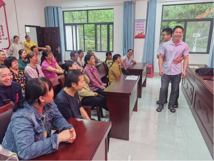 在健康科普环节,村医以方言讲解“农村常见健康问题防治”,结合本地案例,通俗易懂地介绍冠心病预防和“三低”饮食原则。在海姆立克急救法教学时,村医邀请村民现场模拟,通过“剪刀、石头、布”口诀实景演示,让急救技能直观可学、易懂易记。