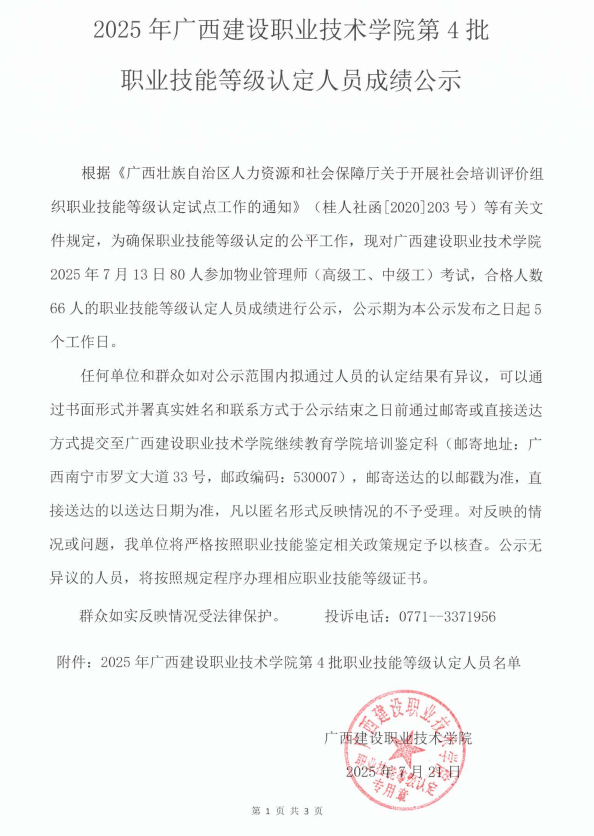 培训信息 当前位置: 首页 >> 培训信息 >> 正文 2025年乐玩首页(中国)网页版第4批职业技能等级认定人员成绩公示 发布日期:2025-07-21 点击: 附件【2025年乐玩首页(中国)网页版第4批职业技能等级认定人员成绩公示.pdf】已下载次