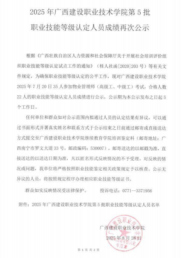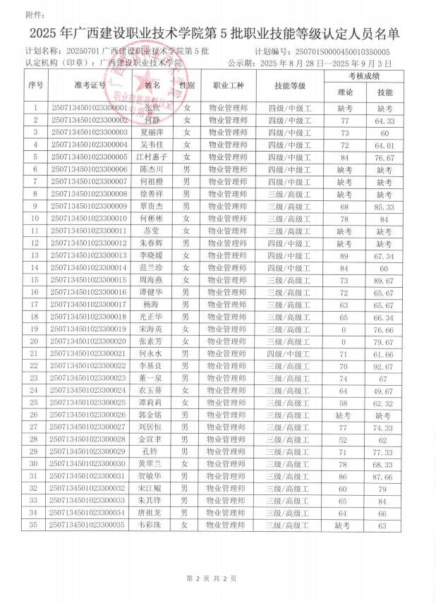 2025年乐玩首页(中国)网页版第5批职业技能等级认定人员成绩再次公示