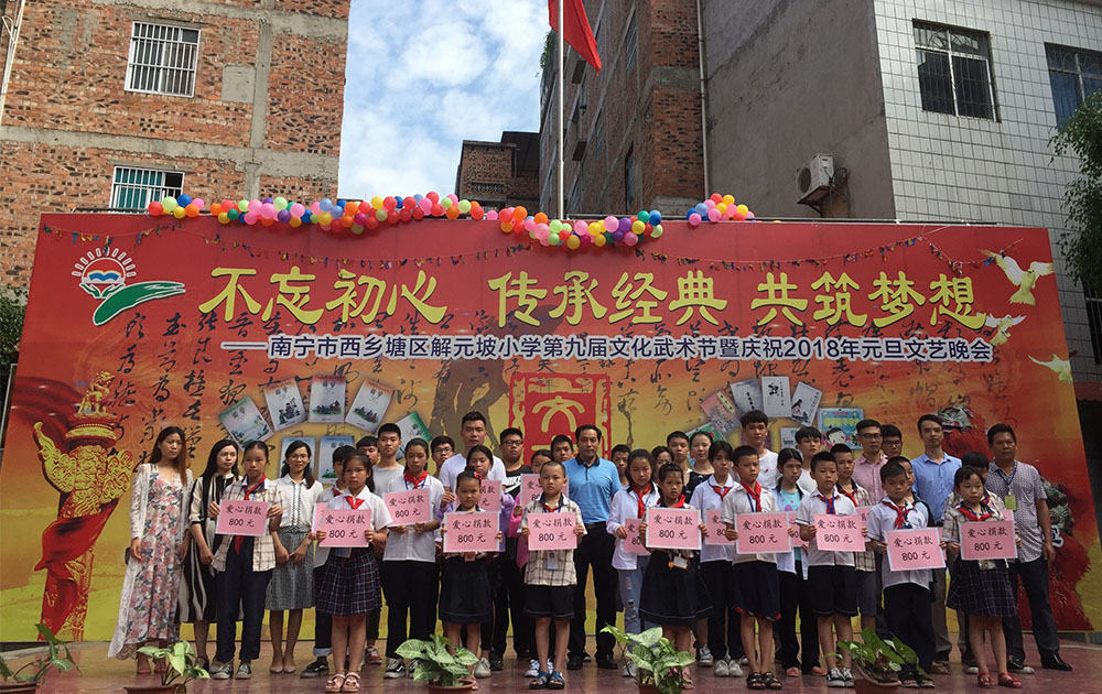 师生为南宁市解元坡小学贫困学生捐资助学