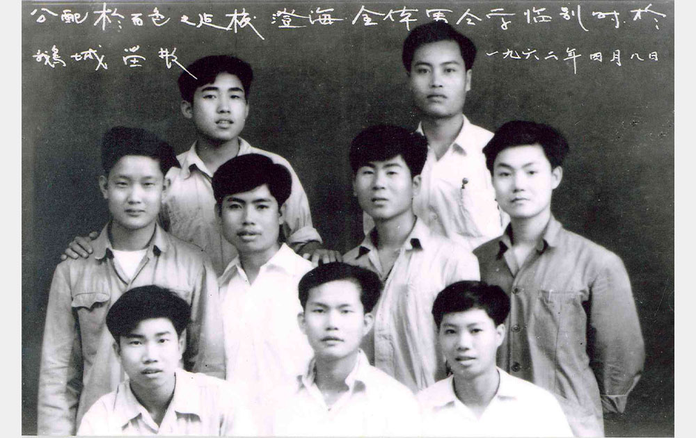 1962年分配到百色的澄海全体男生临别合影(第二排右一为黄镜彬)