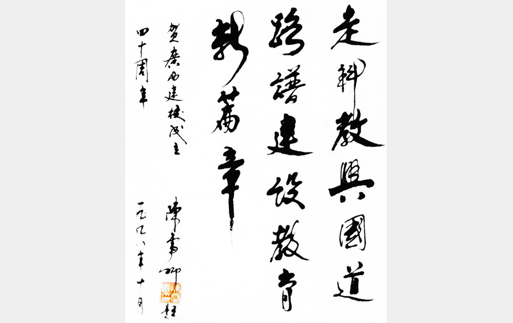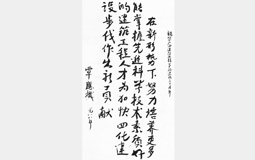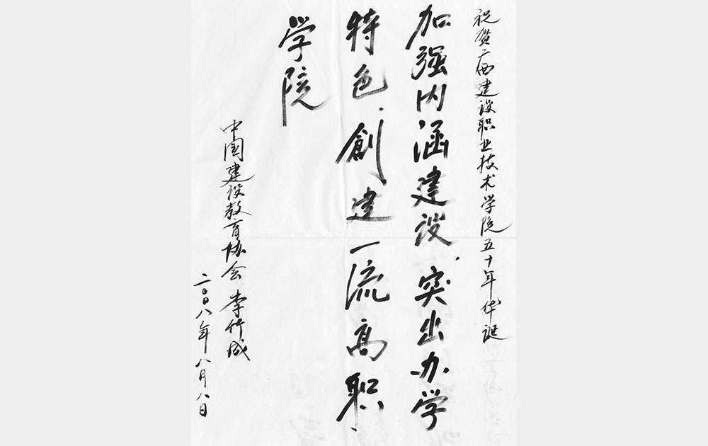 时任中国建设教育协会理事李竹成贺50周年题词