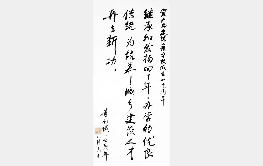 1998年建设部人事教育劳动司副司长、中国建设教育协会副理事长李竹成题词