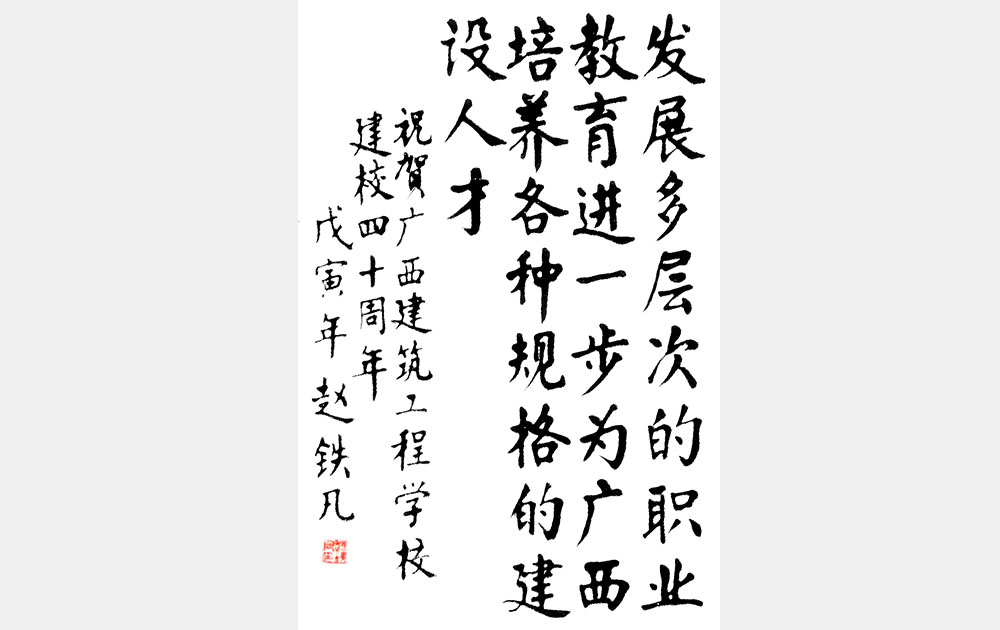 时任中国建设教育协会理事长(建设部顾问、原建设部副部长)廉仲贺40周年题词