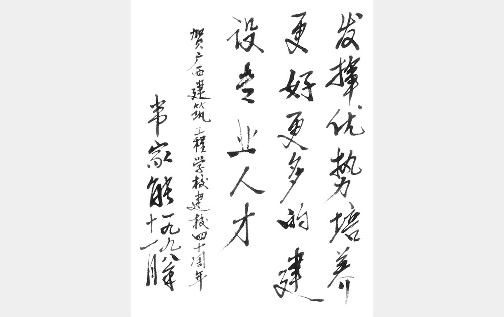 时任自治区人大副主任韦家能贺40周年题词